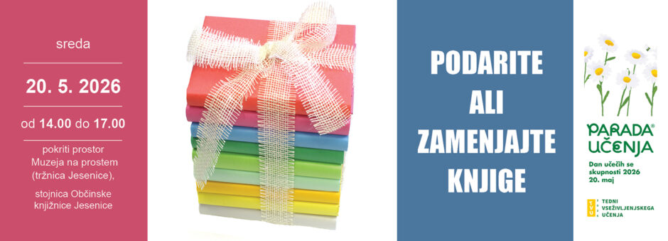 Občinska knjižnica Jesenice tudi letos sodeluje na Paradi učenja. Lahko nam prinesete knjige, ki jih več ne potrebujete ali pa si na naši stojnici izberete knjige, ki so vam všeč.