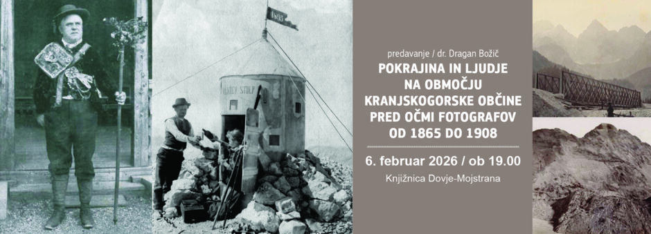 Vabimo vas na predavanje dr. Dragana Božiča z naslovom Pokrajina in ljudje na območju kranjskogorske občine pred očmi fotografov od 1865 do 1908. Na predavanju bodo predstavljene predvsem fotografije, posnete na območju Kranjske Gore od 1865 do 1908.